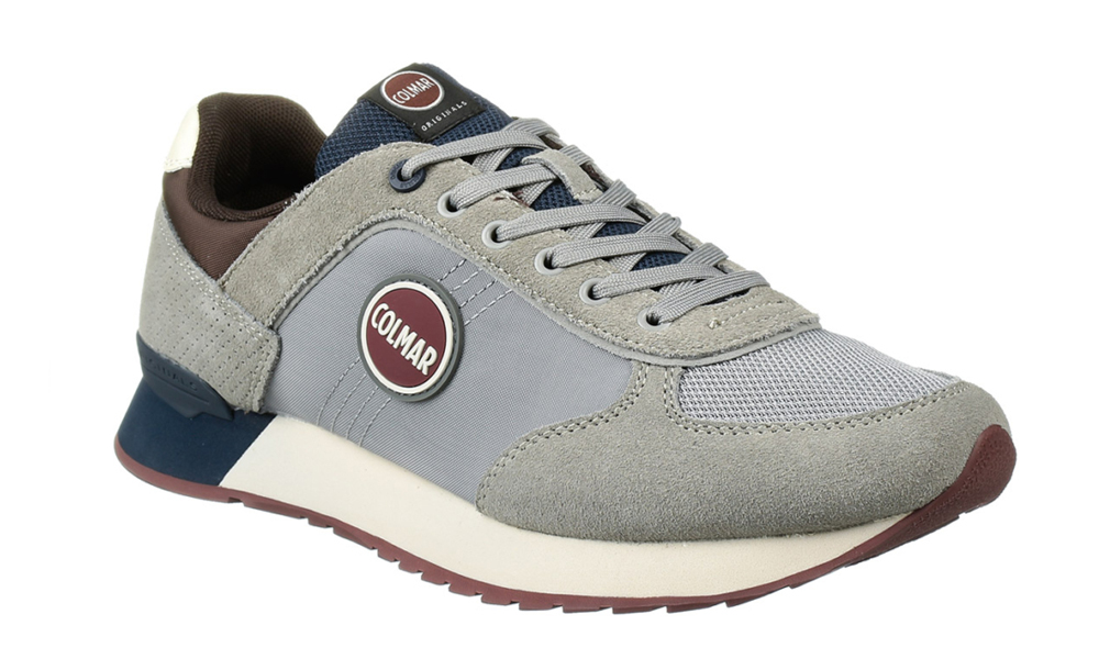 Męskie, casualowe sneakersy marki Colmar o niskiej cholewce. Wykonana została ona z nylonu, skóry oraz lekkiej i przewiewnej siateczki. Na boku cholewki znajduje się panel z gumowym logo producenta. Całość osadzona została na nieco wyższej, piankowej podeszwie wykończonej gumą.