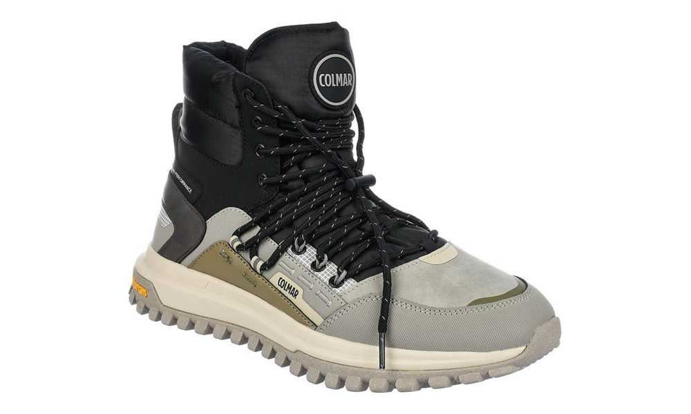 Męskie śniegowce marki Colmar o futurystycznym fasonie. Cholewka sięgająca do połowy łydki została wykonana z materiałów o różnej fakturze, z wzmocnieniami w kluczowych partiach. Jest ona odporna na warunki atmosferyczne. Buty osadzono na wysokiej, piankowej podeszwie wykończonej gumą Vibram, która zadba o przyczepność i amortyzacje.