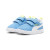 Dziecięce buty marki Puma idealne na ciepłe dni. Cholewka buta o bardzo klasycznym kształcie wykonana jest w całości z lekkiej i przewiewnej siateczki. Na jej boku znajduje się pasek białego koloru, pasujący kolorystycznie do gumowej podeszwy. Buty zapinane są na dwa rzepy, co pomaga dopasować je do stopy.