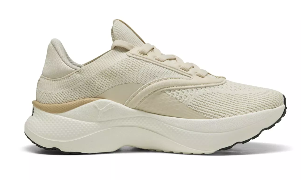 Damskie buty treningowe marki Puma idealne do treningów na hali oraz na świeżym powietrzu. Cholewka inspirowana modelami biegowymi wykonana została z lekkiej i przewiewnej siateczki oraz zamszu w beżowym kolorze. Całość osadzona została na piankowej podeszwie wykończonej gumą, która zapewnia dobrą amortyzację.