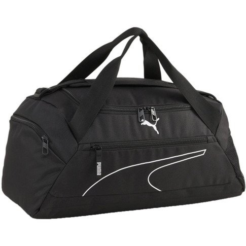 Torba sportowa marki Puma może być używana na codzień jak i również na trening. Czarna kolorystyka z białymi detalami świetnie się prezentuje. Duża kieszeń główna oraz mniejsza boczna zapinane są na zamki błyskawiczne. Regulowany pasek pozwala na dopasowanie do użytkownika.