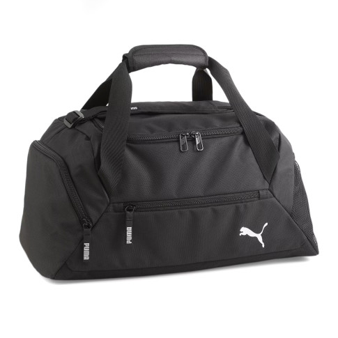 Męska torba piłkarska marki Puma może być używana na codzień jak i również na trening. Czarna kolorystyka z białymi detalami świetnie się prezentuje. Duża kieszeń główna oraz mniejsza boczna zapinane są na zamki błyskawiczne. Regulowany pasek pozwala na dopasowanie do użytkownika.