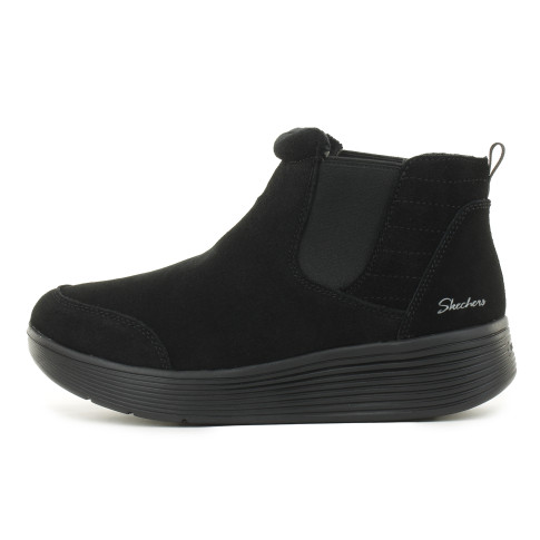 Skechers 159095‑BBK to stylowe, miejskie botki damskie łączące elegancki wygląd z komfortem noszenia. Wykonane głównie ze skóry naturalnej (zamsz bydlęcy), wyróżniają się dopracowanym wykończeniem i staranną konstrukcją — idealne na sezon Jesień–Zima 2025 dla kobiet ceniących modę i wygodę.