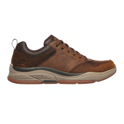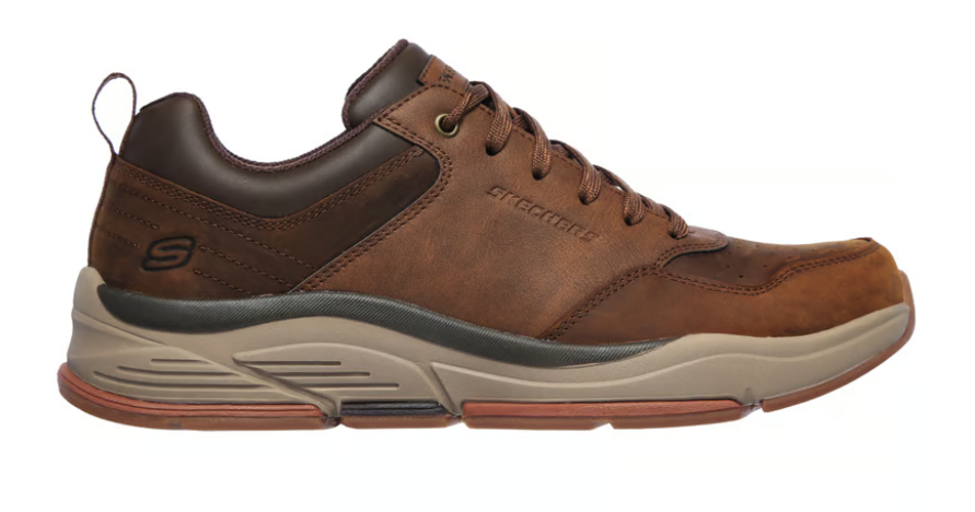 Uzyskaj kilka punktów w kategorii stylu dzięki długotrwałemu komfortowi Skechers Relaxed Fit® — model Benago – Treno łączy klasyczny, wiązany fason ze skórzaną cholewą i zaawansowanymi technologiami komfortu. Miękka, amortyzująca wkładka Air‑Cooled Memory Foam® oraz podpora Skechers Goga Mat Arch™ zapewniają wygodę i wsparcie przez cały dzień, a lekka, amortyzująca podeszwa dodaje nowoczesnego charakteru.