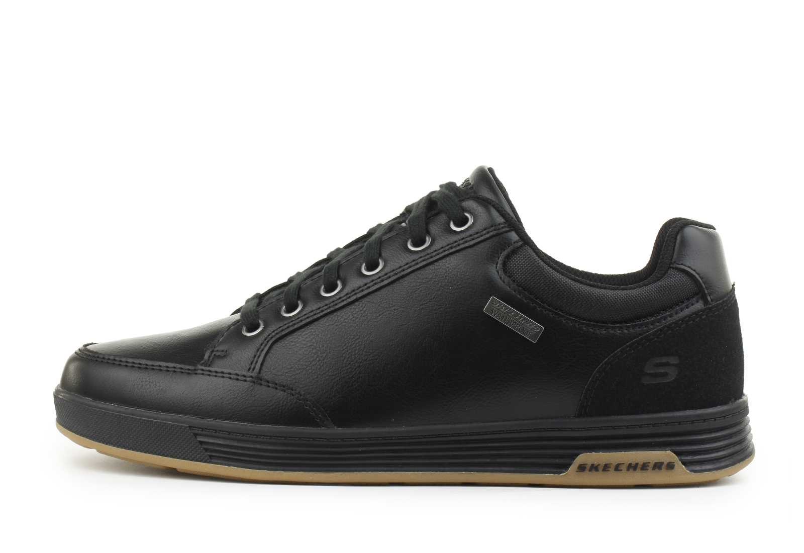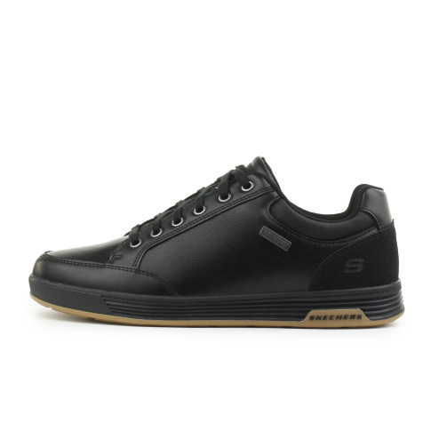 Skechers Cavell – Sparkman to ponadczasowe sneakersy do kostki w uniwersalnej, czarnej odsłonie. Wykonane z wysokiej jakości skóry syntetycznej (poliuretan), łączą klasyczny wygląd z nowoczesnymi rozwiązaniami zapewniającymi komfort i trwałość. Wodoodporna konstrukcja chroni przed wilgocią, a elastyczne sznurówki dopasowują but do stopy, co ułatwia codzienne użytkowanie.