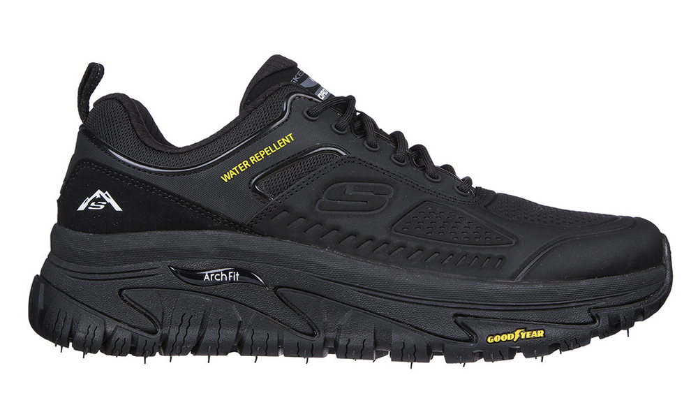 Buty Skechers Ach Fit idealnie sprawdzą się w okresie jesienno zimowym. Cholewka buta o futurystycznym kształcie została wykonana z synterycznego materiału o ciekawej fakturze i zwiększonej odporności na wodę. Osadzona zostałą na masywnej, piankowej podeszwie wykończonej gumą. Całoś świetnie prezentuje się w czarnej kolorystyce.