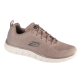 Sportowe buty marki Skechers sprawdzą się idealnie do ćwiczeń na hali czy amatorskiego biegania. Cholewka wykonana z lekkiej i przewiewnej siateczki w brązowej kolorystyce osadzona została na piankowej podeszwie. Wewnątz znajduje się wkładka Memory Foam, która zapamiętuje kształt stopy.