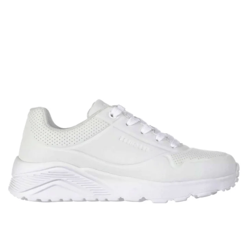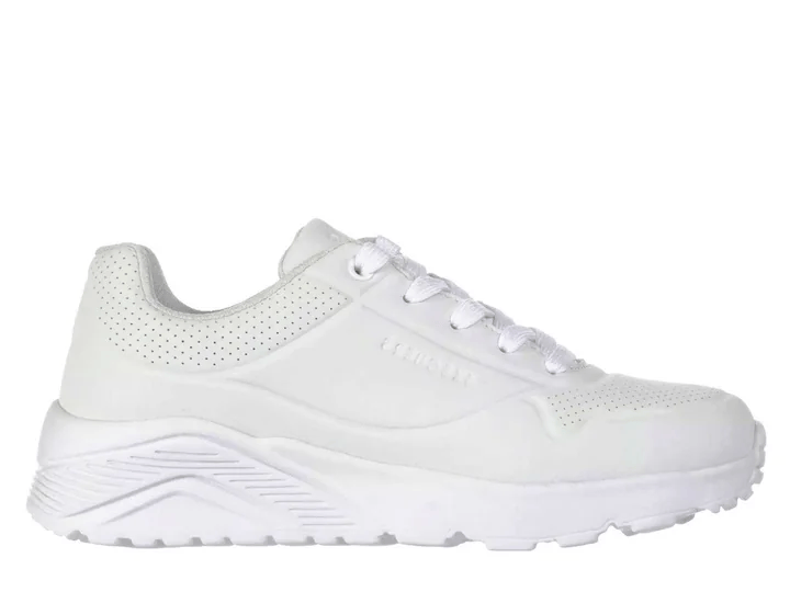 Kultowy styl w nieskazitelnej bieli! Buty młodzieżowe Skechers Uno Lite - Delodox 403694L-W to propozycja dla osób, które cenią klasyczny wygląd sneakersów, ale szukają obuwia lżejszego i bardziej elastycznego. Śnieżnobiała kolorystyka sprawia, że jest to absolutny must-have – buty te idealnie pasują do szkoły, na spotkania ze znajomymi oraz jako dopełnienie każdej modnej stylizacji.