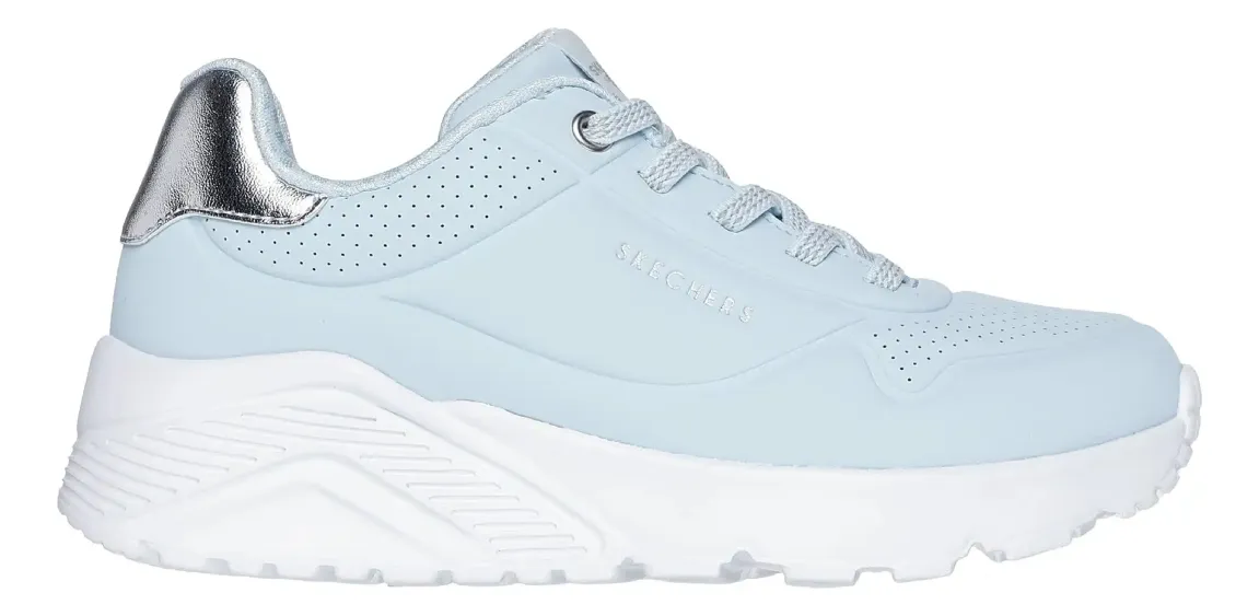 Subtelny blask i lekkość, którą pokocha każda młoda fanka mody! Buty dziewczęce Skechers Uno Lite 310384L-LBSL to nowoczesna interpretacja klasycznego stylu Uno. Połączenie delikatnego błękitu ze srebrzystymi, metalicznymi akcentami (Light Blue Silver) sprawia, że sneakersy te prezentują się niezwykle świeżo i stylowo, pasując zarówno do szkolnych stylizacji, jak i wyjściowych zestawów.