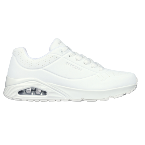 Klasyczna amortyzowana wygoda w nowej odsłonie — Skechers Street™ Street Uno – Stand on Air to modne, wiązane sneakersy z gładką, perforowaną cholewką ze skóry syntetycznej. Połączenie eleganckiego wyglądu z zaawansowanymi technologiami komfortu sprawia, że model doskonale sprawdza się przez cały dzień — od miejskich spacerów po codzienne obowiązki.
