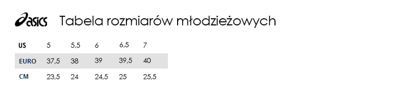 Marka Asics używa rozmiarówki US. Przed zakupem sprawdź, czy w opisie produktu nie znajduje się osobna tabela rozmiarów - jest tak np. w modelu "Gel-Lyte III". Obowiązują nasępujące rozmiarówki :